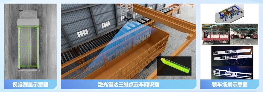 基于人工智能的三維目標檢測技術,采用深度學習方法準確地找出車廂的四周,并確定車輛目標在場景中的位置、尺寸以及姿態(tài)。利用激光雷達從上方對車輛進行快速三位掃描,對激光雷達點云動態(tài)數(shù)據(jù)進行分析,除能實現(xiàn)車廂邊緣、車廂深度和料位高度等常規(guī)檢測外,還可實現(xiàn)對橫向拉筋的高精度檢測。系統(tǒng)通過相關數(shù)據(jù)分析,實現(xiàn)裝車過程碼垛頭等相關設備的控制,同時通過智能語音、屏幕顯示等方式,自動提示司機下一步動作。